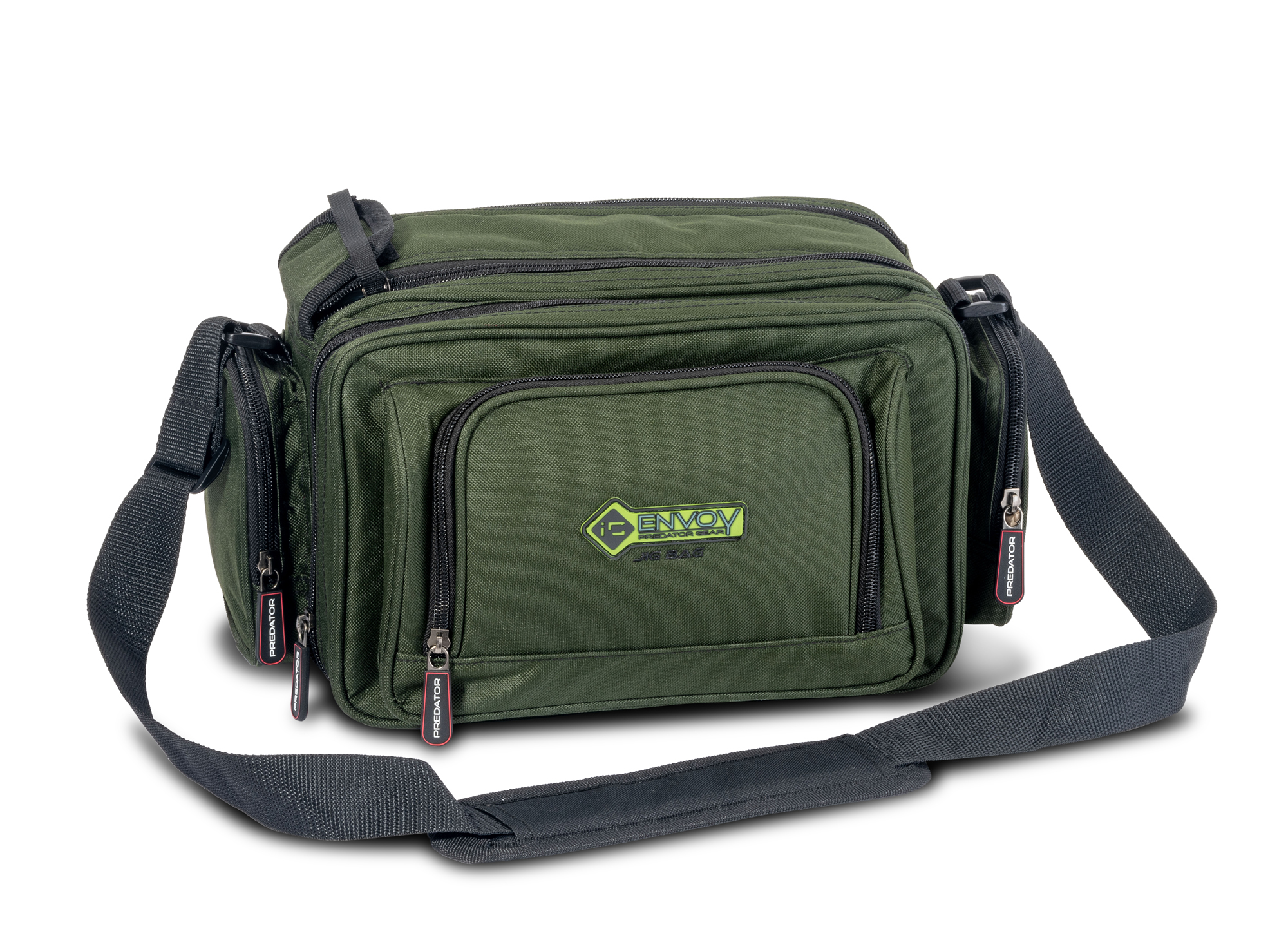 Deze compacte en doordachte schoudertas wordt geleverd met twee bijpassende doosjes voor aas en accessoires. Het hoofdvak maakt dankzij een dubbele rits en een klittenbandsluiting een bijzonder snelle toegang tot de inhoud mogelijk. Een groot voorvak biedt veel opbergruimte, terwijl het aangebrachte vak perfect geschikt is voor papieren en kleine onderdelen. Twee extra zijvakken en een gewatteerde, verstelbare schouderriem voor comfortabel transport maken de uitrusting compleet.
